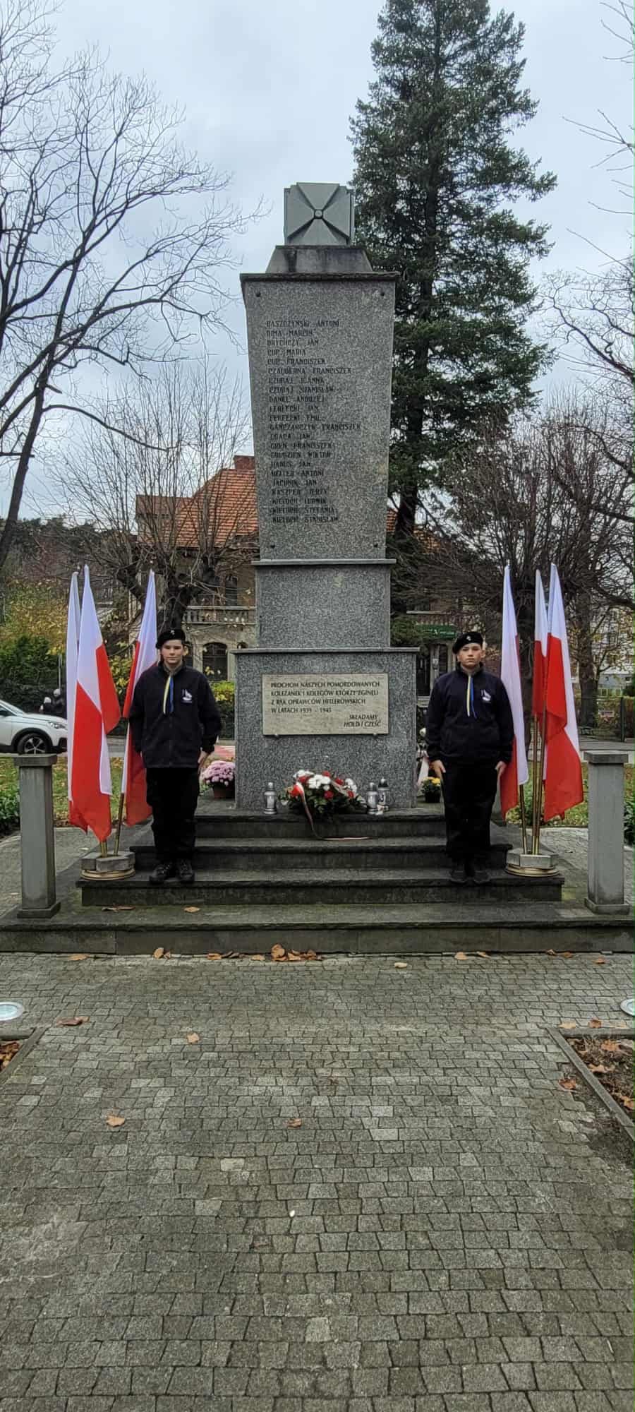 Harcerze z 11. Grunwaldzkiej Wielopoziomowej Drużyny Harcerskiej "Impessa" oraz zuchy z gromady "Leśne duszki" pełnili honorową wartę przy pomnikach, oddając w ten sposób hołd poległym bohaterom.