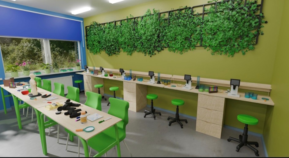 W ramach projektu zostaną zakupione nowoczesne pomoce dydaktyczne, które przekształcą proces kształcenia z pasywnego przekazu wiedzy w aktywny proces badawczy. Sala doposażona zostanie w nowe meble oraz sprzęt multimedialny, a kluczowym elementem będzie powiększenie pracowni o część zaplecza, co znacząco poprawi ergonomię i bezpieczeństwo pracy uczniów. Dzięki większej powierzchni możliwe będzie stworzenie dedykowanych stanowisk badawczych, gdzie uczniowie będą mogli korzystać z posiadanych już przez szkołę mikroskopów.