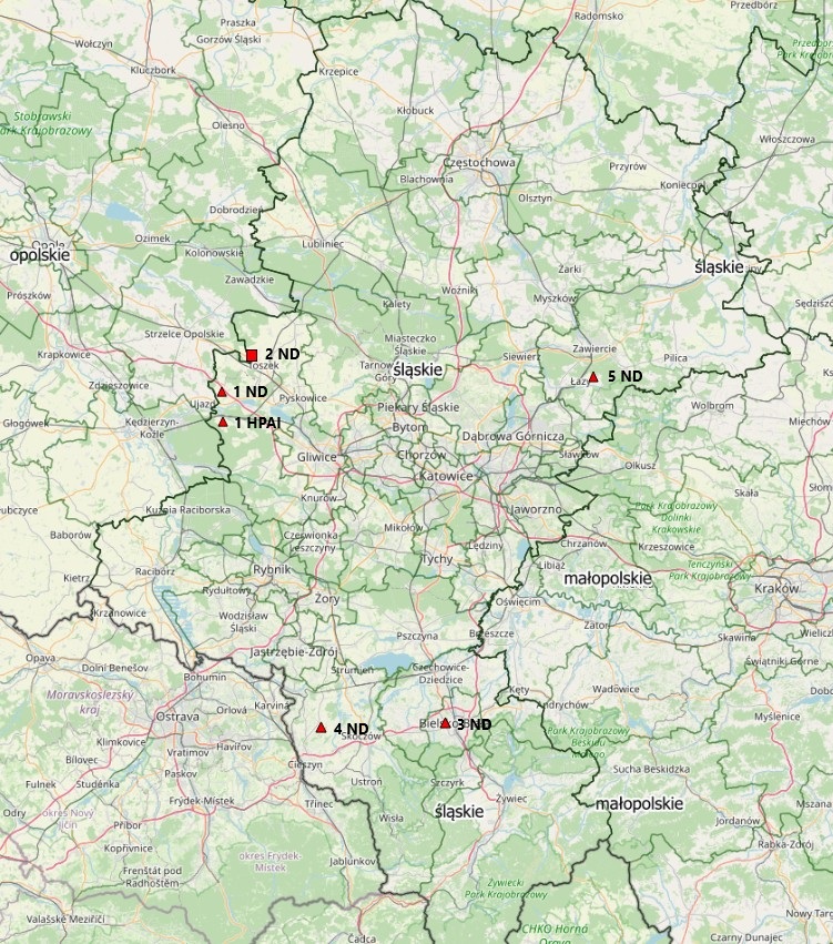 Ognisko dotyczy stada chowu przyzagrodowego utrzymującego 43 szt. drobiu, w województwie Śląskim, powiat zawierciański, gmina Łazy, miejscowość Rokitno Szlacheckie. Jest to piąte ognisko rzekomego pomoru drobiu stwierdzone w województwie Śląskim.